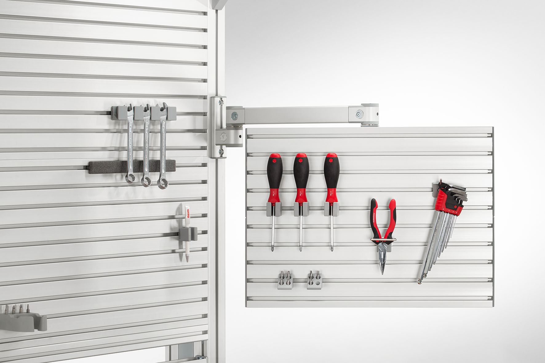 The manual industrial work bench – the place responsible for the biggest share of value creation – has a very special significance. However, for users to stay focused and motivated, the work bench needs to be perfectly equipped. That’s why item offers ready-to-install Pivot Arms in a range of designs that can be used to position all kinds of equipment and digital aids so they are always within easy reach and in the perfect place. The freely adjustable friction in the joint means staff can position the Pivot Arms to suit their needs precisely, thus delivering maximum efficiency and outstanding work bench ergonomics.